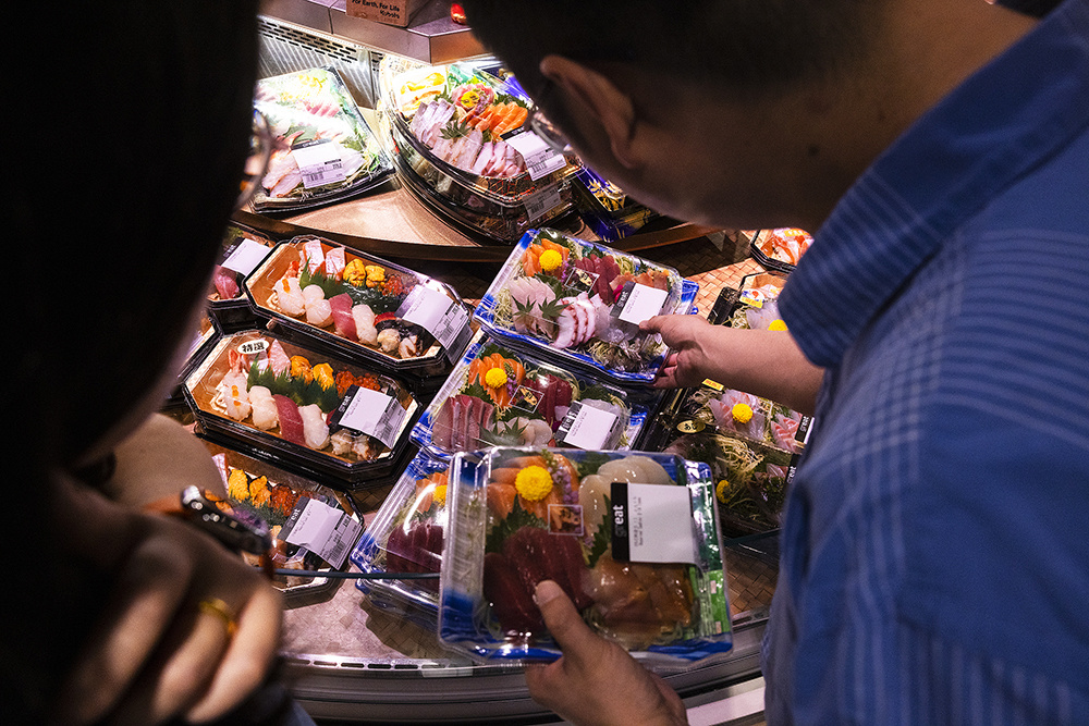 2023年7月12日,香港,顾客浏览日本进口海产品。香港一位高级官员7月12日说,如果东京将处理过的放射性废水排放入海,香港将立即禁止从福岛和日本其他县进口水产品。