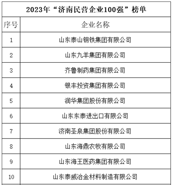 昨天,济南发布了2023年“济南民营企业100强”系列榜单。